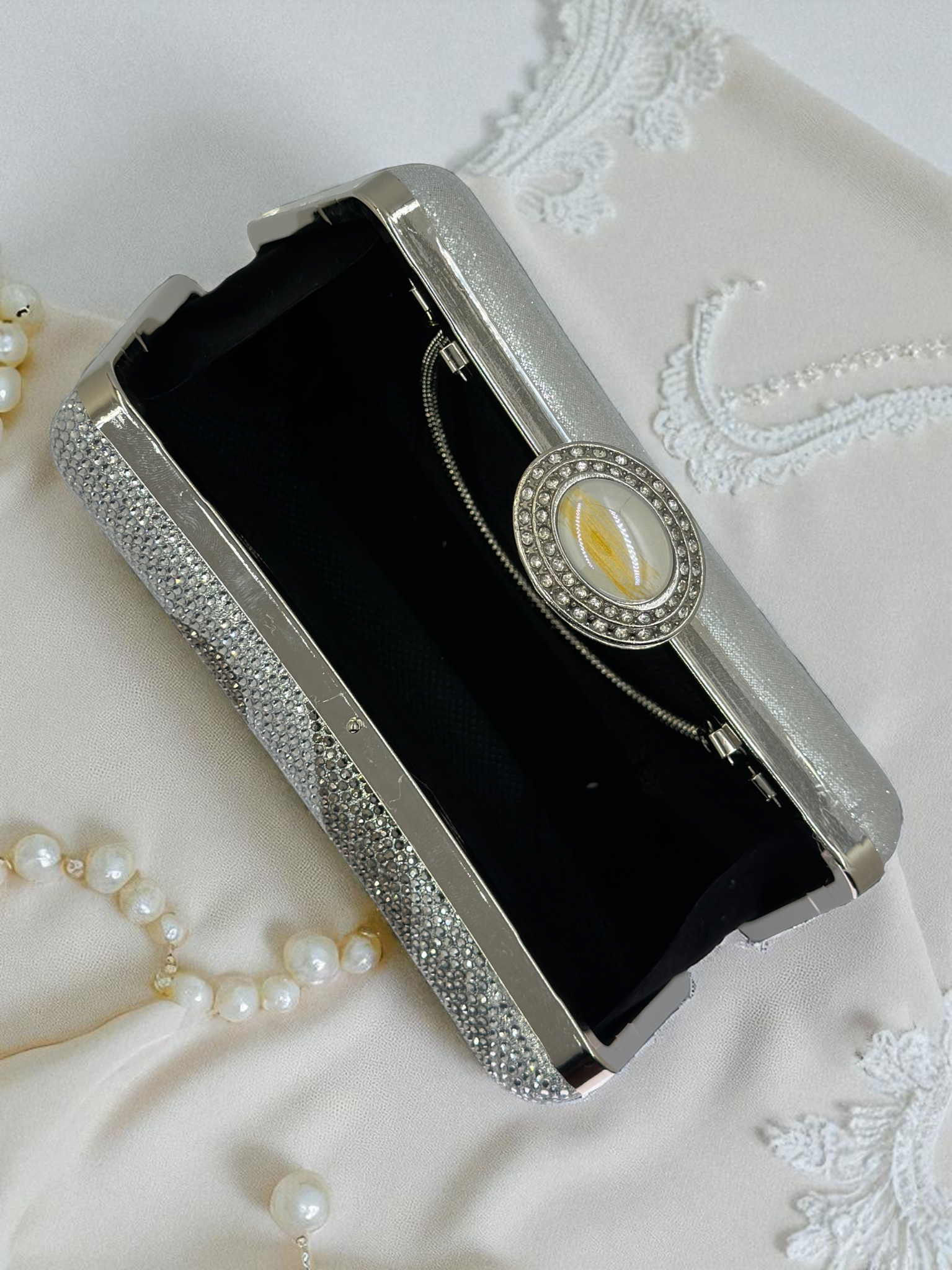 Lüks Kristal ve İnci Gece Çantası Clutch