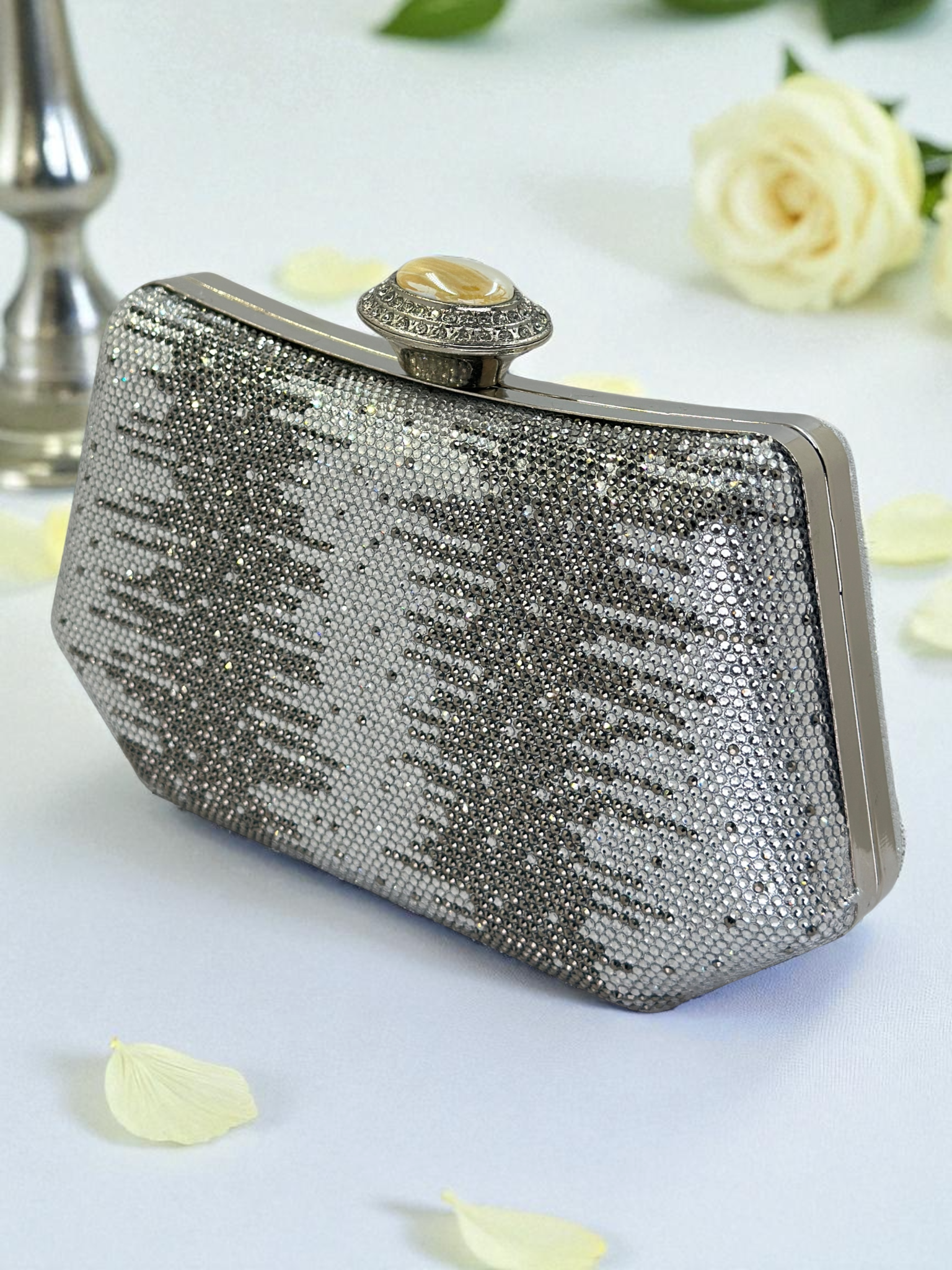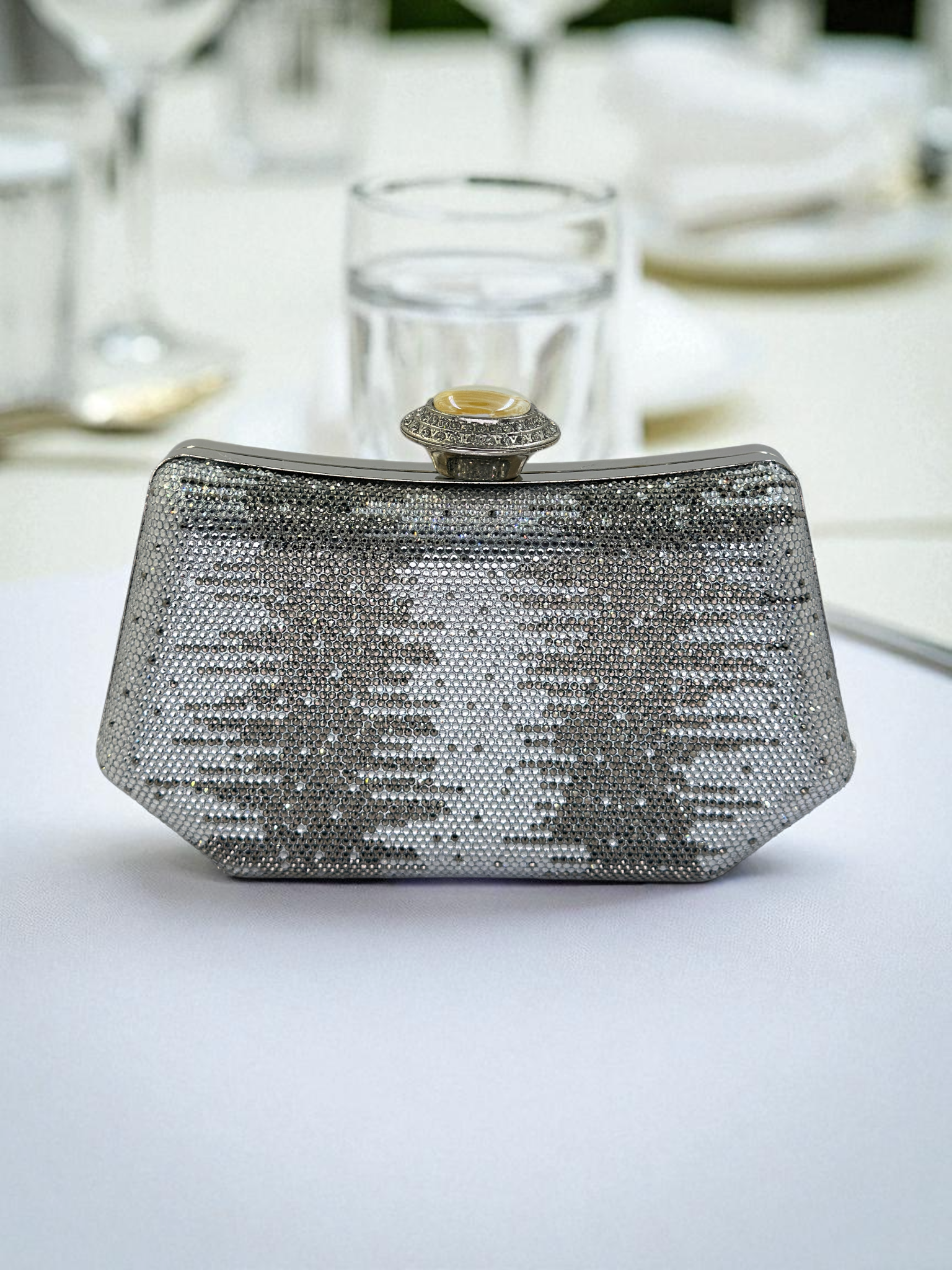 Bu özel tasarım abiye çanta, en ışıltılı gecelerinizin vazgeçilmezi olmaya aday. Komple kristal taş ve zarif inci detaylarıyla süslenmiş bu gece çantası, her adımda göz kamaştırmanızı sağlar. Gümüş renkli sağlam metal çerçevesi ile modern ve lüks bir görünüm sunarken, 20x12 cm ideal ölçüsü sayesinde tüm özel eşyalarınızı güvenle taşır. İşçiliğindeki detaylar, çantayı sadece bir aksesuar değil, aynı zamanda zarif bir mücevher parçası haline getirir.