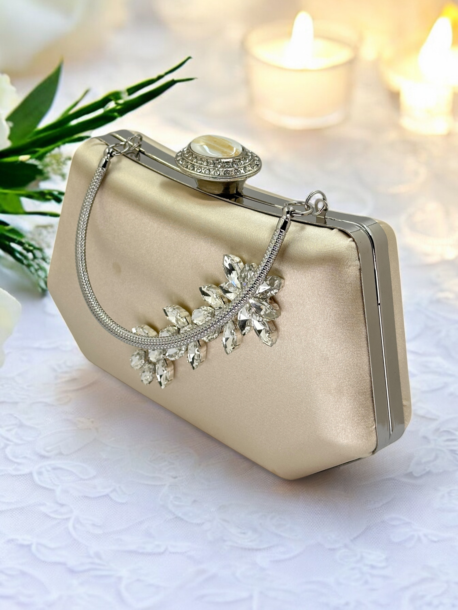 Lüks Ten Nude Abiye Çanta Saten Kristal Taşlı Düğün Clutch